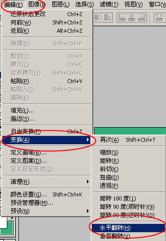 3.按Ctrl+J 將"按鈕--底部"復(fù)制一層,選擇:編輯> 變形 > 垂直翻轉(zhuǎn),再選擇:編輯> 變形 > 水平翻轉(zhuǎn),分別如<圖6>,<圖7>