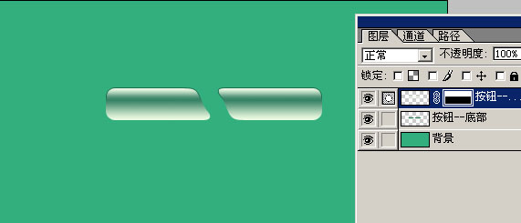 1.新建一個(gè)500*250象素的窗口,填充綠色(R:52,G:175,B:125),再新建一層命名為"按鈕--底部",選擇“圓角矩形工具”如<圖1>,半徑數(shù)值為“10”如<圖2>,繪制如<圖3>所示的圓角矩形。