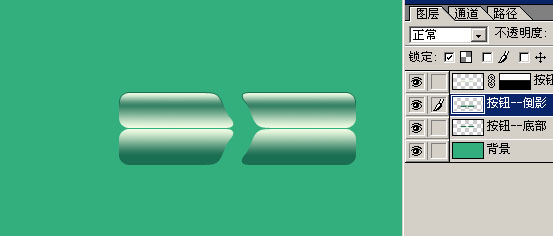 9.把“按鈕--底部”復(fù)制一層命名為“按鈕--倒影”,選擇菜單:編輯 > 變換 > 垂直翻轉(zhuǎn),用箭頭工具拖到適當(dāng)?shù)奈恢萌?lt;圖20>