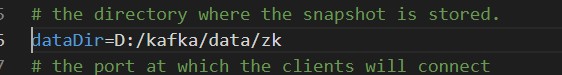 1. 進入Kafka解壓縮文件夾的config目錄,修改zookeeper.properties配置文件