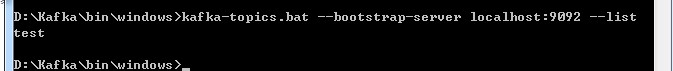 輸入如下命令創(chuàng)建主題test: kafka-topics.bat --bootstrap-server localhost:9092 --create --topic test
