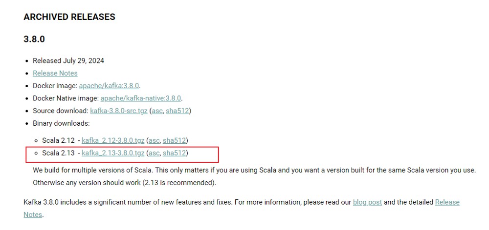 下載Kafka:Kafka下載地址Apache Kafka: A Distributed Streaming Platform.