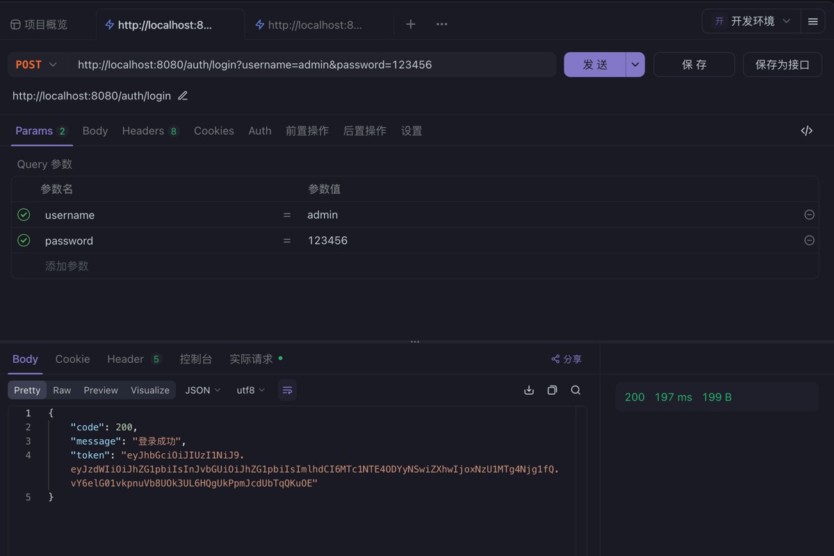 POST http://localhost:8080/auth/login 參數(shù): username=admin password=123456
