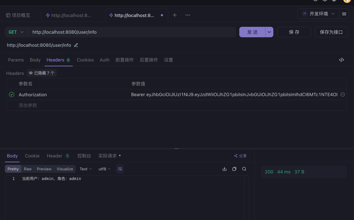 GET http://localhost:8080/user/info Header: Authorization: Bearer eyJhbGciOiJIUzI1NiJ9...