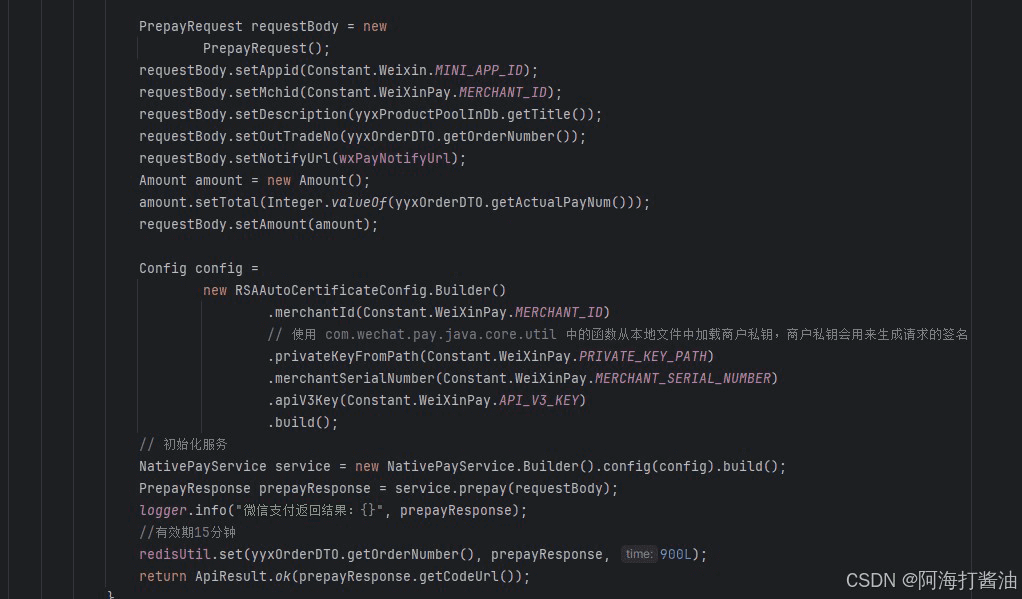 到此這篇關(guān)于Java接入微信支付的文章就介紹到這了,更多相關(guān)Java接入微信支付內(nèi)容請(qǐng)搜索腳本之家以前的文章或繼續(xù)瀏覽下面的相關(guān)文章希望大家以后多多支持腳本之家!
