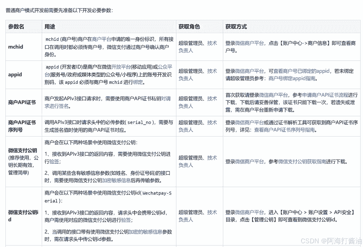 對(duì)應(yīng)指引鏈接:開(kāi)發(fā)必要參數(shù)說(shuō)明_通用規(guī)則|微信支付商戶文檔中心