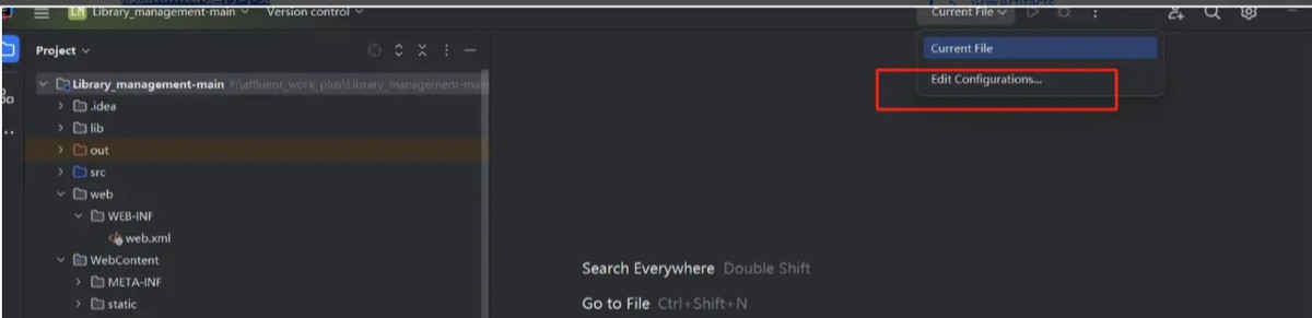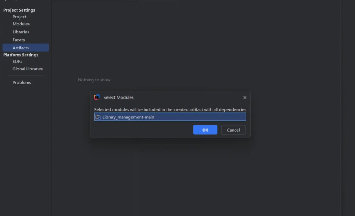 點(diǎn)擊Library_management-main(項(xiàng)目名),再點(diǎn)擊ok