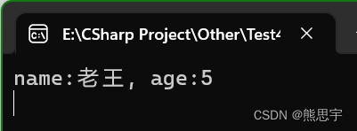 Console.WriteLine("name:{0}, age:{1}",name,age);