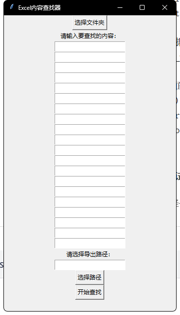 import os import openpyxl from tkinter import * from tkinter import filedialog # 定義UI界面 class App: def __init__(self, master): self.master = master master.title('Excel內(nèi)容查找器') master.geometry('350x600') # 創(chuàng)建文件夾選擇按鈕 self.folder_button = Button(master, text='選擇文件夾', command=self.select_folder) self.folder_button.pack() # 創(chuàng)建查找內(nèi)容輸入框和按鈕 self.search_label = Label(master, text='請輸入要查找的內(nèi)容:') self.search_label.pack() # 創(chuàng)建20個文本框,用于輸入需要查找的內(nèi)容 self.search_entries = [] for i in range(20): search_entry = Entry(master) search_entry.pack() self.search_entries.append(search_entry) # 創(chuàng)建導出路徑輸入框和按鈕 self.export_label = Label(master, text='請選擇導出路徑:') self.export_label.pack() self.export_entry = Entry(master) self.export_entry.pack() self.export_button = Button(master, text='選擇路徑', command=self.select_export_path) self.export_button.pack() # 創(chuàng)建開始查找按鈕 self.search_button = Button(master, text='開始查找', command=self.search) self.search_button.pack() # 創(chuàng)建狀態(tài)欄 self.status_label = Label(master, text='') self.status_label.pack() # 選擇文件夾 def select_folder(self): self.folder_path = filedialog.askdirectory() self.status_label.config(text=f'已選擇文件夾:{self.folder_path}') # 選擇導出路徑 def select_export_path(self): export_path = filedialog.asksaveasfilename(defaultextension='.xlsx') self.export_entry.delete(0, END) self.export_entry.insert(END, export_path) # 查找指定內(nèi)容 def search(self): # 獲取要查找的內(nèi)容列表 search_texts = [entry.get().strip() for entry in self.search_entries if entry.get().strip()] if not search_texts: self.status_label.config(text='請至少輸入一個要查找的內(nèi)容') return # 獲取導出路徑 export_path = self.export_entry.get().strip() if not export_path: self.status_label.config(text='請選擇導出路徑') return # 創(chuàng)建新的Excel文件 export_wb = openpyxl.Workbook() export_ws = export_wb.active # 遍歷文件夾內(nèi)的所有Excel文件 for filename in os.listdir(self.folder_path): if filename.endswith('.xlsx'): # 打開Excel文件 filepath = os.path.join(self.folder_path, filename) wb = openpyxl.load_workbook(filepath) # 遍歷Excel文件中的所有工作表 for sheetname in wb.sheetnames: ws = wb[sheetname] # 遍歷工作表中的所有單元格 for row in ws.iter_rows(): for cell in row: for search_text in search_texts: if search_text in str(cell.value): # 如果找到指定內(nèi)容,提取所需內(nèi)容和緊隨其后的表格數(shù)據(jù) extract_data(wb, sheetname, cell.row, filepath, search_text, export_ws) # 保存并關閉新的Excel文件 export_wb.save(export_path) export_wb.close() self.status_label.config(text='查找完成') # 提取所需內(nèi)容和緊隨其后的表格數(shù)據(jù) def extract_data(wb, sheetname, row, filepath, search_text, export_ws): ws = wb[sheetname] # 提取所需內(nèi)容 data = [search_text] for col in range(1, ws.max_column + 1): data.append(ws.cell(row=row, column=col).value) # 將數(shù)據(jù)寫入新的Excel文件 export_ws.append(data) # 創(chuàng)建UI界面并運行程序 root = Tk() app = App(root) root.mainloop()