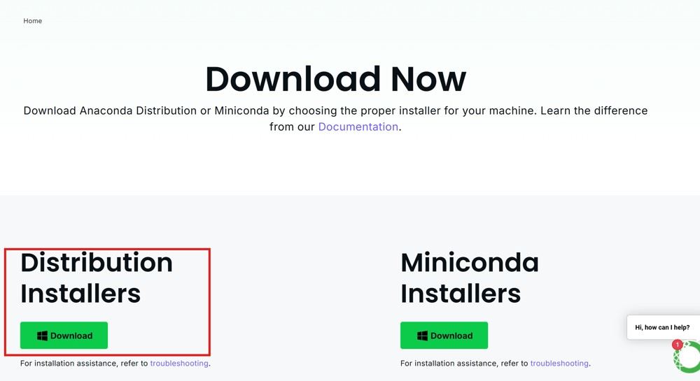 第二步:點(diǎn)擊左邊的Distribution Installer(這個也就是anaconda的下載,右邊miniconda其實就是anaconda的閹割版,但主要功能也完全夠用)