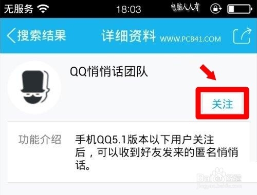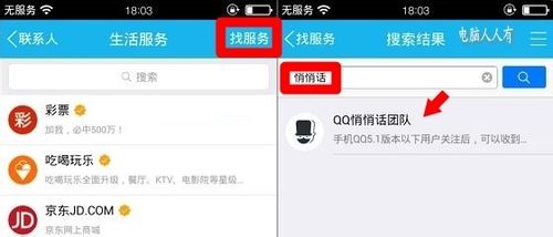 生活服務→找服務→搜索框中輸入悄悄話→QQ悄悄話團隊→添加
