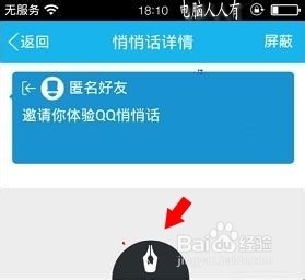 - 手機qq新添功能——qq悄悄話,悄悄話是匿名的,說明你發(fā)給對方一個悄悄話,對方是不知道發(fā)送人是誰的。但是呢,現(xiàn)在qq悄悄話只是部分人才有權(quán)限。那么qq悄悄話在哪里?如何使用?2015-03-05