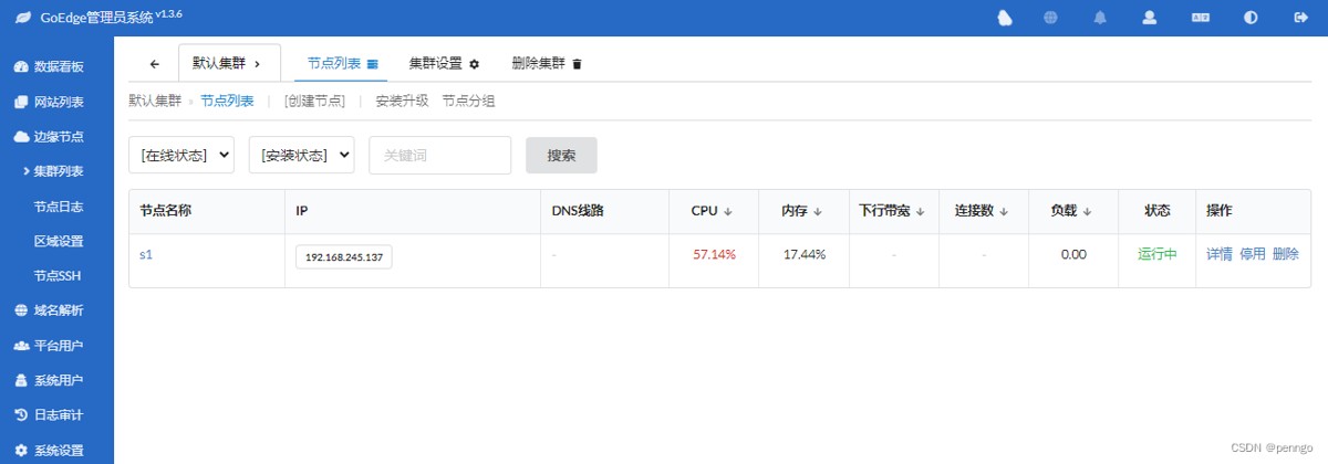 啟動成功后,可以在管理平臺上看到剛才配置的節(jié)點正在運行。