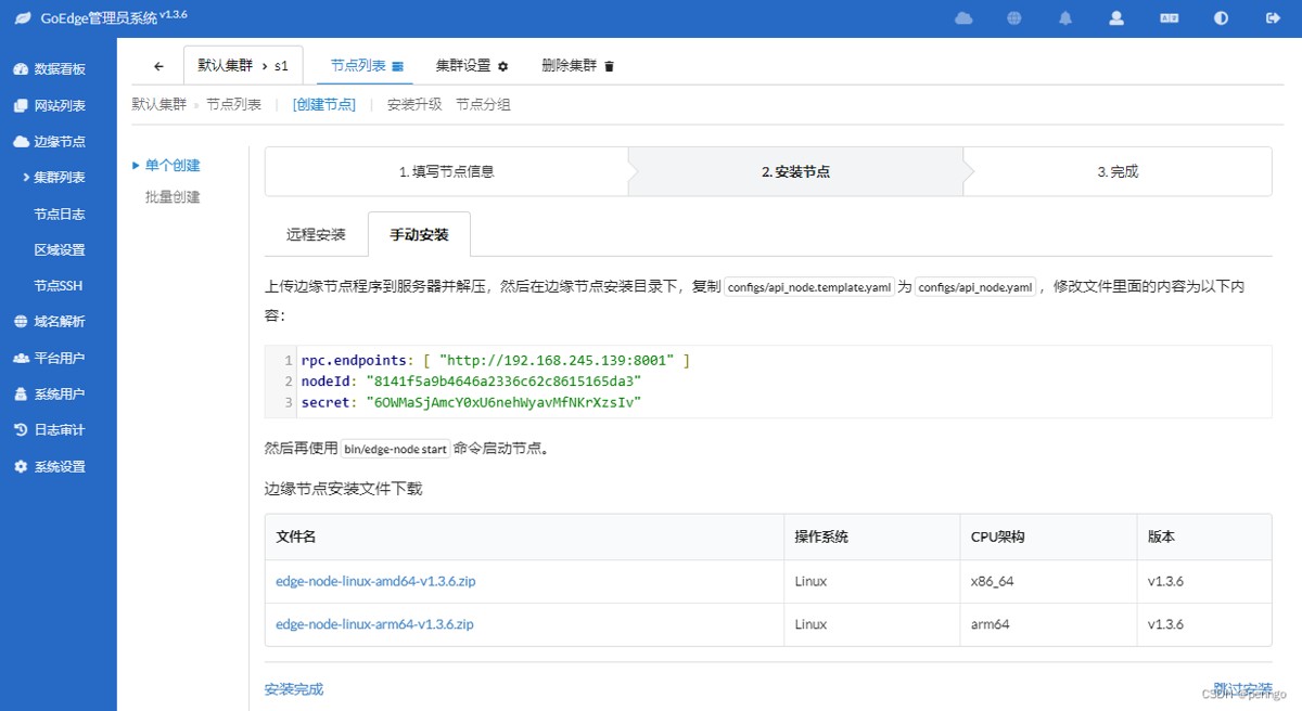 在官網(wǎng)https://goedge.cn/downloads下載對應版本,也可以在管理后臺上下載