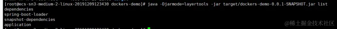 java -Djarmode=layertools -jar target/dockers-demo-0.0.1-SNAPSHOT.jar list