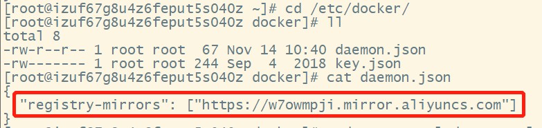 3、查看daemon.json文件夾下是否有 阿里云的鏡像加速器地址