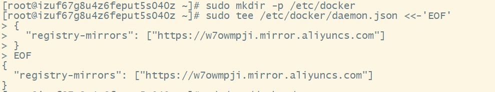 sudo tee /etc/docker/daemon.json <<-'EOF'