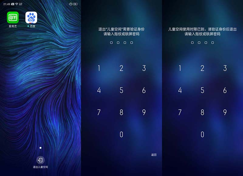 3、進(jìn)入兒童空間后屏幕上就只有你允許使用的軟件,最下面是退出按鈕,當(dāng)按退出按鈕或時(shí)間到后都會(huì)彈出驗(yàn)證身份界面,需輸入指紋或鎖屏密碼才可以退出兒童空間。