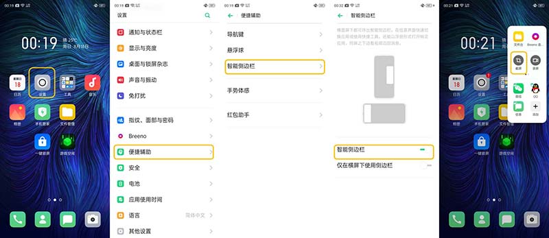 打開(kāi)桌面設(shè)置—便捷輔助—智能側(cè)邊欄—智能側(cè)邊欄開(kāi)啟,在需要截屏的界面滑出智能側(cè)邊欄選擇截屏。