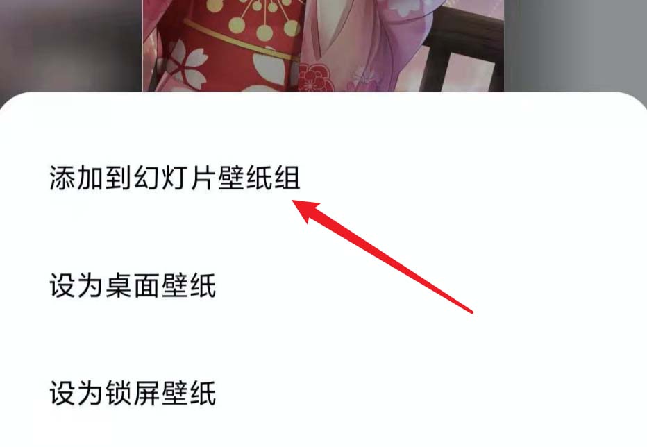 6、在彈出的選項里,點擊選擇添加到幻燈片壁紙組。