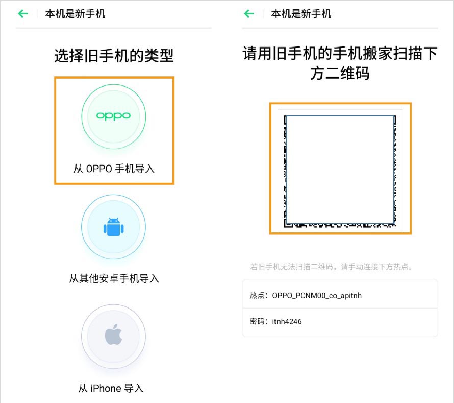 3、選擇從OPPO手機導入,然后就會出現(xiàn)一個二維碼。