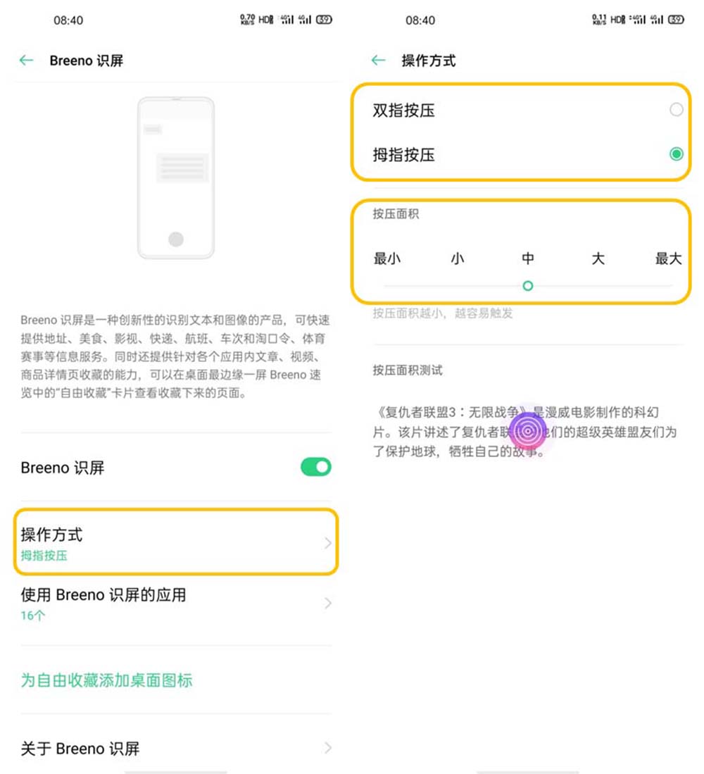 2、可以根據(jù)自己的使用習(xí)慣及便利性,通過【操作方式】調(diào)整一下相關(guān)按壓方式、或按壓面積。