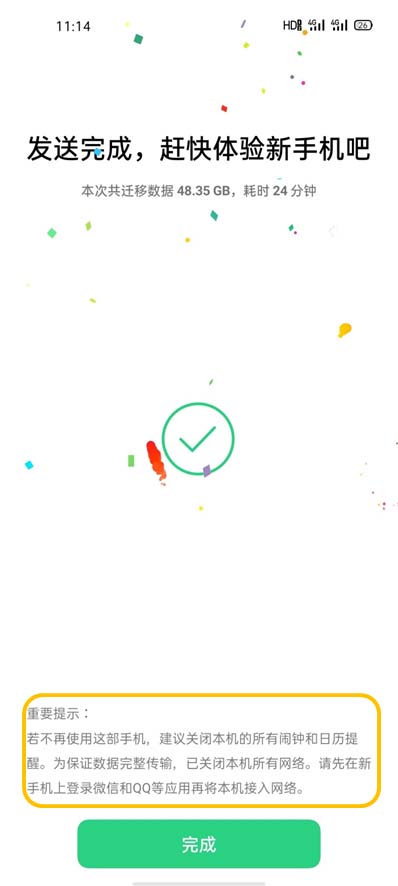 若不再使用舊手機(jī),建議關(guān)閉舊手機(jī)的所有鬧鐘和日歷提醒。為保證數(shù)據(jù)完整傳輸,關(guān)閉舊手機(jī)所有網(wǎng)絡(luò)。請(qǐng)先在新手機(jī)上登錄微信和QQ等應(yīng)用再將舊手機(jī)接入網(wǎng)絡(luò)。