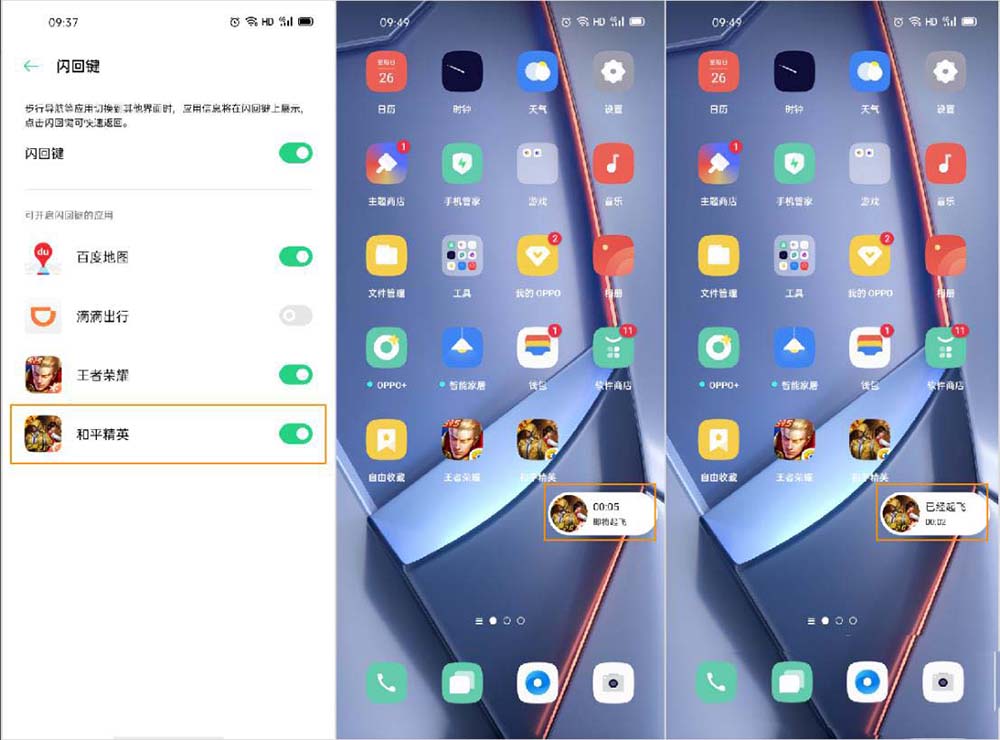 目前“閃回鍵”僅支持王者榮耀、和平精英、百度地圖和滴滴出行等應(yīng)用。