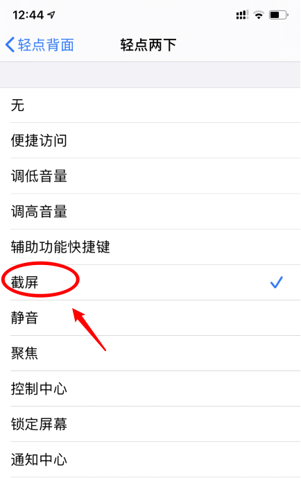 6、勾選截屏的功能。這樣,在輕點手機背面兩下時,就可以執(zhí)行截屏操作,。