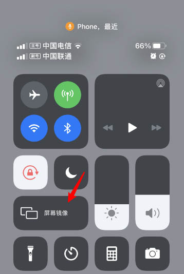 2、在控制中心內(nèi),點(diǎn)擊屏幕鏡像的選項(xiàng)。