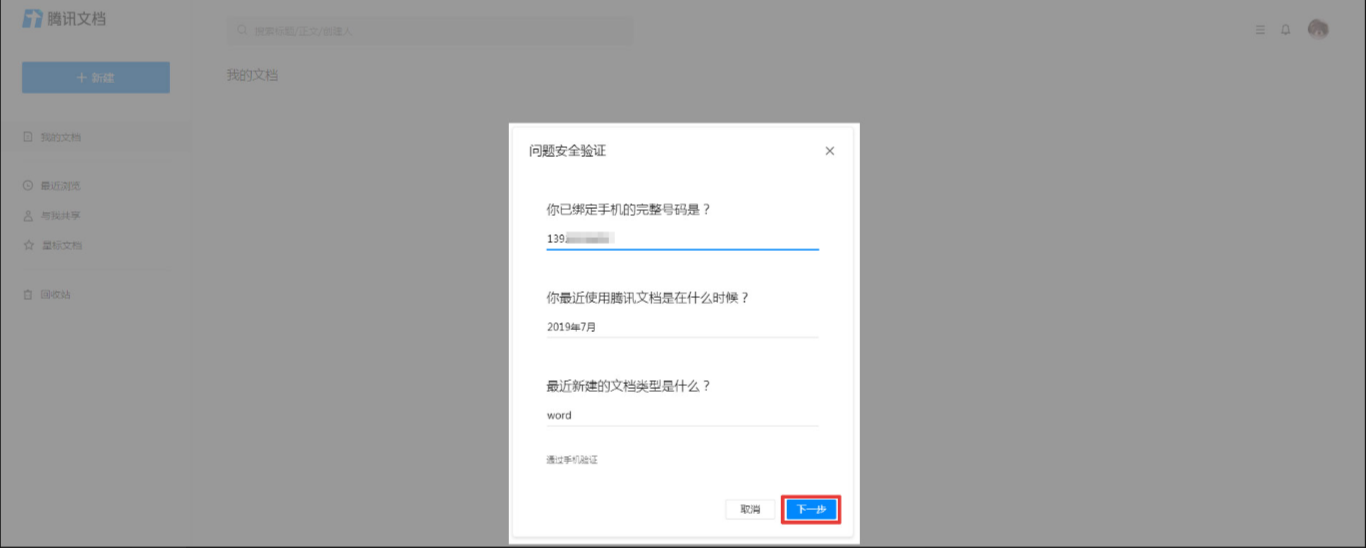 或點擊「通過安全問題驗證」,回答安全問題,點擊「下一步」;