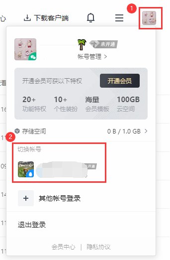 在桌面瀏覽器中使用騰訊文檔,若登錄過(guò)多個(gè)賬號(hào),可以通過(guò)個(gè)人中心快速進(jìn)行賬號(hào)切換,具體操作如下: