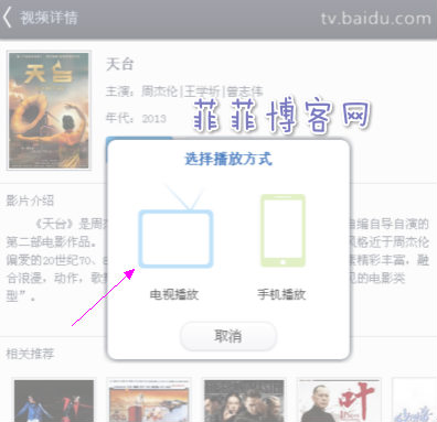 4)綁定成功后,就可以在手機(jī)上選擇想看的影視劇,播放時(shí)選擇推送到“電視播放”即可。