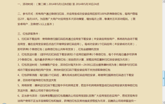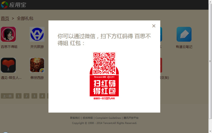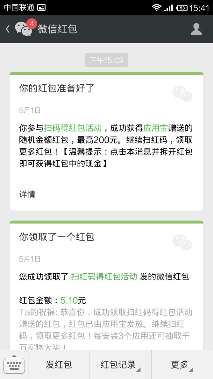 微信應(yīng)用寶掃碼中紅包,金額隨機(jī)。暫時每個紅包(5.1元)