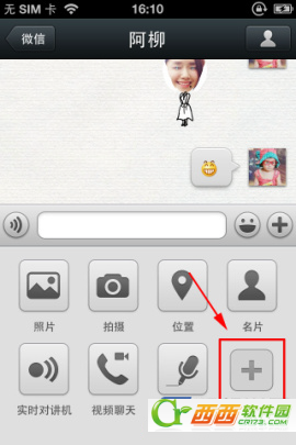 1)打開(kāi)微信軟件,進(jìn)入微信后選擇其中好友的聊天窗口,點(diǎn)擊“+”后找到并點(diǎn)擊微信應(yīng)用添加。(如下圖所示)