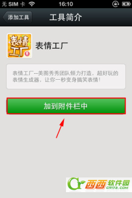 在表情工廠(chǎng)里制作出表情后點(diǎn)擊表情 會(huì)彈出來(lái)一個(gè)分享表情 有個(gè)發(fā)送給微信好友的選項(xiàng) 隨便發(fā)給一個(gè)好友 再看微信“+”的地方 就會(huì)出現(xiàn)微信工廠(chǎng)了 再添加就好了!