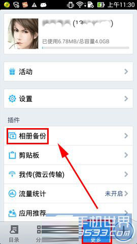 1)安裝并打開騰訊微云,進入【更多】面板,點擊【相冊備份】。(如下圖)