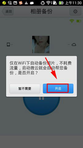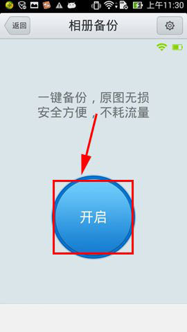 2)點擊【開啟】,接著可根據(jù)需求選擇是否開啟自動備份,小編選擇了【開啟】這樣相冊有更新了就自動備份相當方便。(如下圖)