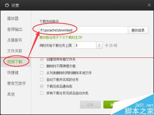 7、在左側(cè)選擇【視頻下載】,在右側(cè)就可以看到【下載存放路徑】,下載后的視頻就在這里。