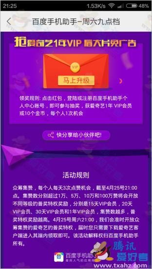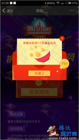 3、愛奇藝會(huì)員是秒到的,其他點(diǎn)贊啥的活動(dòng)規(guī)則等下再仔細(xì)看吧!