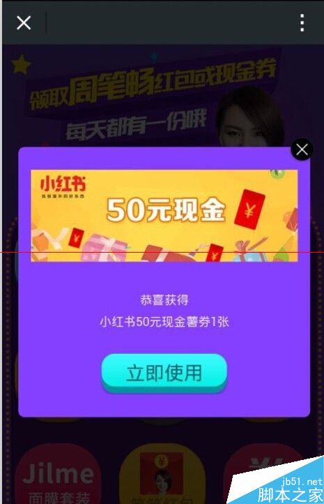 4、另外,也可以點擊“天天搶紅包”,在打開的搶紅包窗口中,點擊“搶”----窗口提示結(jié)果。這里搶到了一款優(yōu)惠券現(xiàn)金紅包??牲c擊“立即使用”。