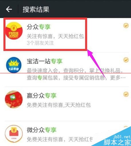 2、直接在輸入框中輸入:公眾專享,在打開的搜索內(nèi)容中,點擊第一個官方公眾號.點擊“關(guān)注”。