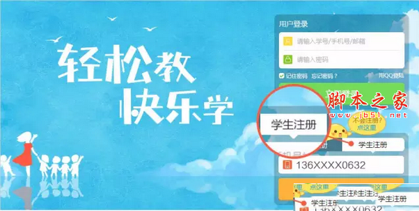 1、打開一起作業(yè)點(diǎn)擊右下角“學(xué)生注冊(cè)”,在下面填寫老師手機(jī)號(hào) (或ID);