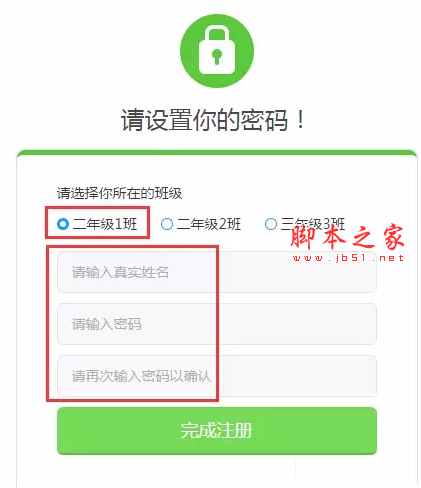 2、選擇學(xué)生的班級(jí),填寫學(xué)生姓名、設(shè)置登錄密碼
