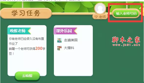 1、登錄一起作業(yè)賬號(hào),點(diǎn)擊老師頭像右側(cè)的“輸入老師號(hào)碼”綠色按鈕;