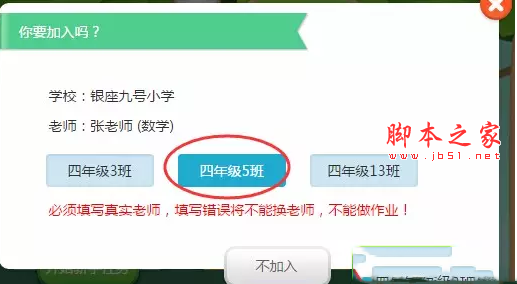 3、選擇學(xué)生所在的班級(jí),點(diǎn)擊“確定加入”
