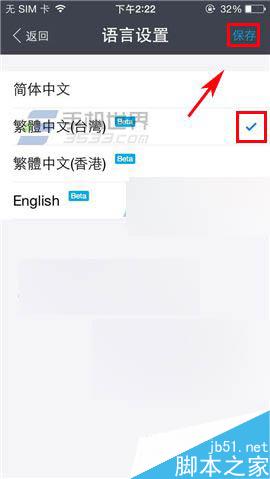 2)在設(shè)置頁(yè)面點(diǎn)擊【語(yǔ)言】,選擇你要切換的語(yǔ)言,在該語(yǔ)言右邊選【√】,最后點(diǎn)擊右上角【保存】即可。(如下圖)