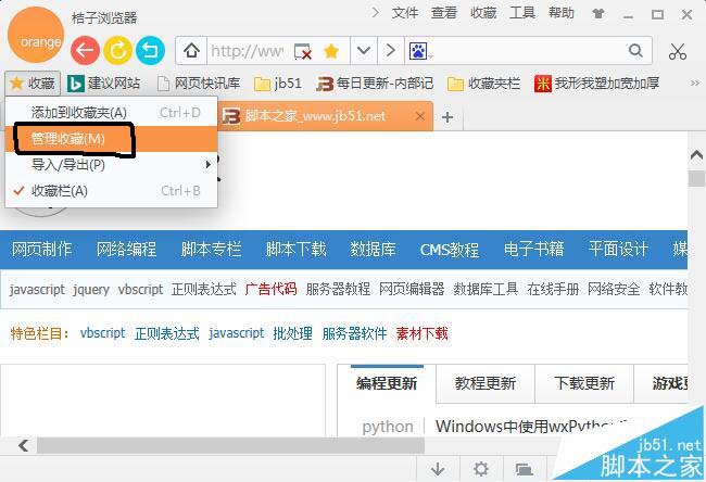 以上就是桔子瀏覽器收藏夾的使用方法,不會(huì)的朋友可以留言,我們會(huì)繼續(xù)幫您解答,喜歡的朋友轉(zhuǎn)載請(qǐng)注明文章來(lái)源腳本之家,謝謝支持。