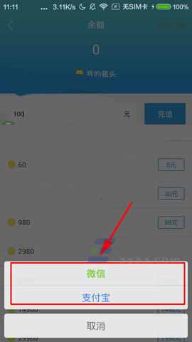 2)然后輸入金額后點擊【充值】,接著選擇充值方式【點擊】。(如下圖)