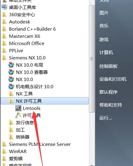 10、找到所有程序目錄中NX10中的tool文件,也就是ug許可證。選中打開